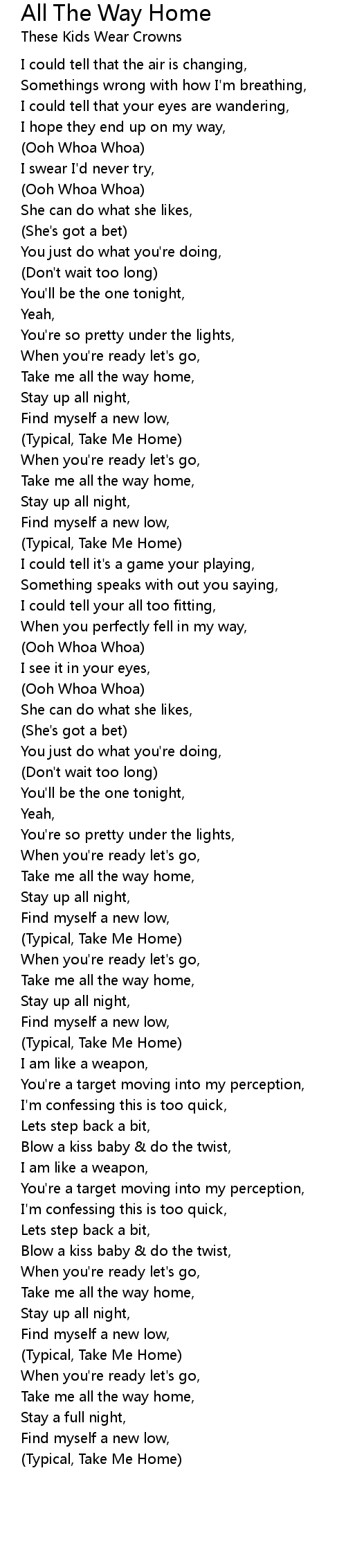 Take me all the way home, |