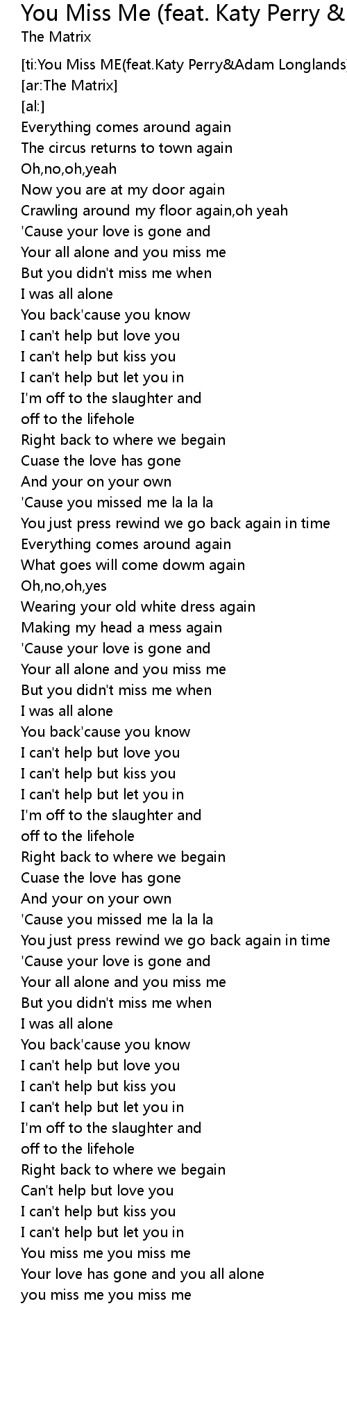 You Miss Me (feat. Katy Perry & Adam Longlands) Lyrics