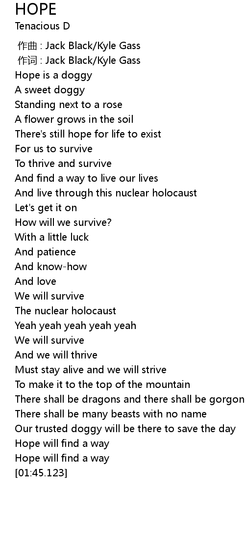 | [01:36.803] | Hope will find a way |