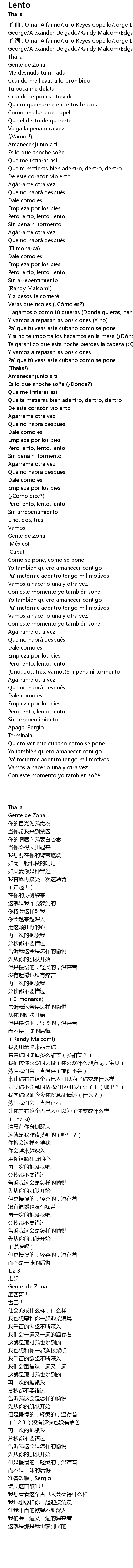 | [00:00.000] | 作曲 : Omar Alfanno/Julio Reyes Copello/Jorge Luis Chacín/Sergio George/Alexander Delgado/Randy Malcom/Edgar Barrera/Andres Castro/Jon Leone |