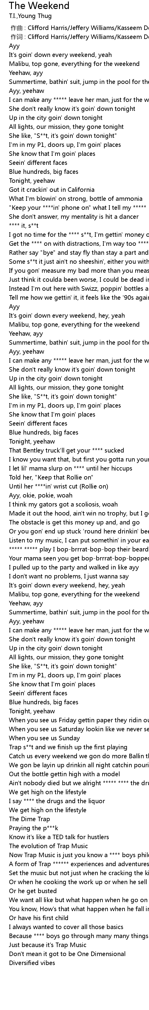 | [03:01.89] | I can make any ***** leave her man, just for the weekend |