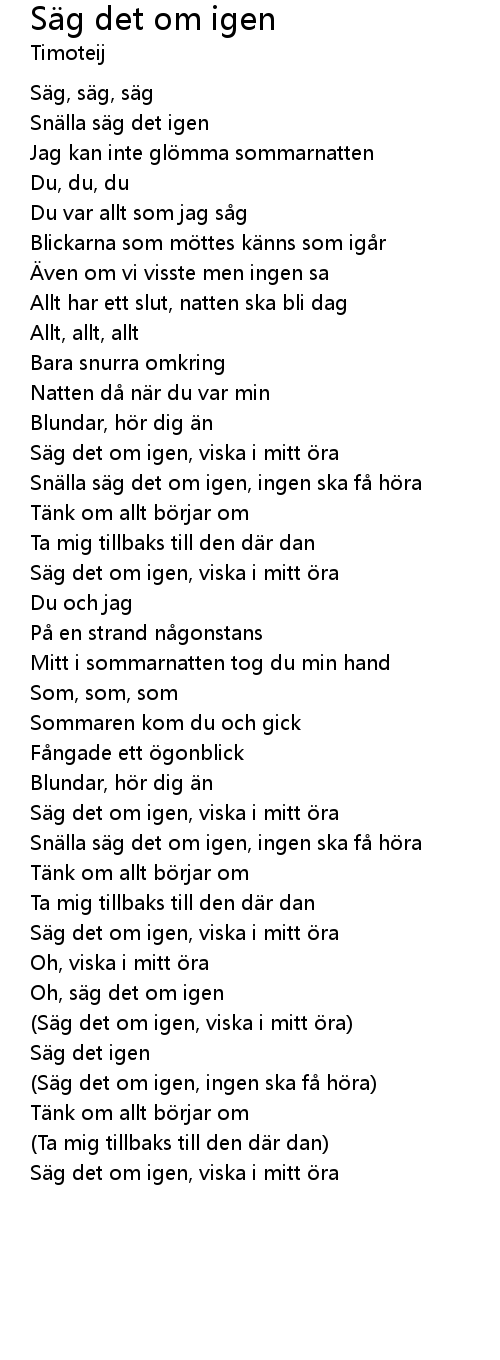 | Sn lla s g det om igen, ingen ska f h ra | |