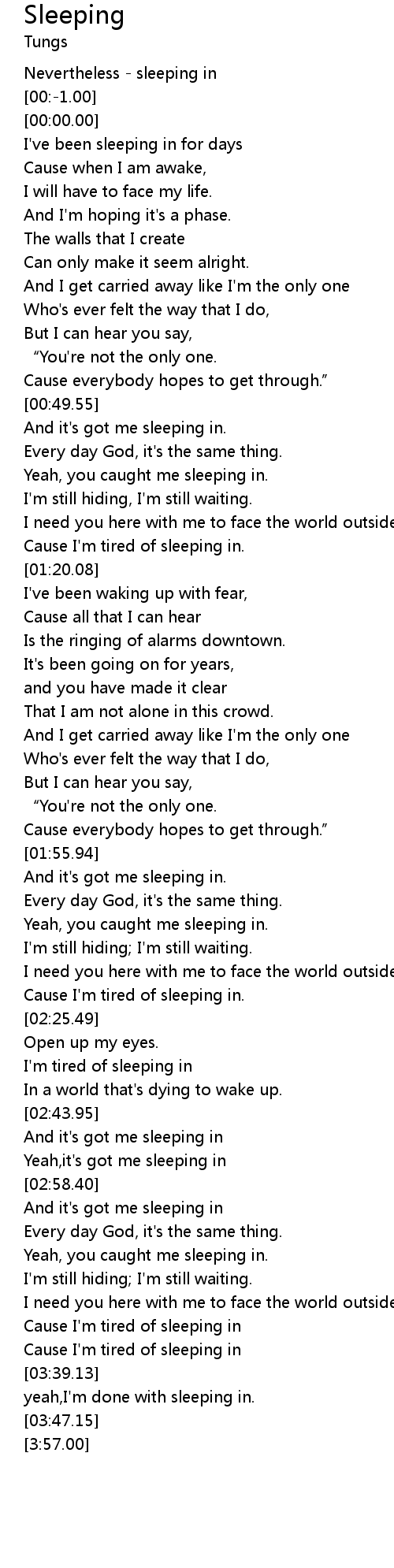 | [03:34.44] | Cause I' m tired of sleeping in |