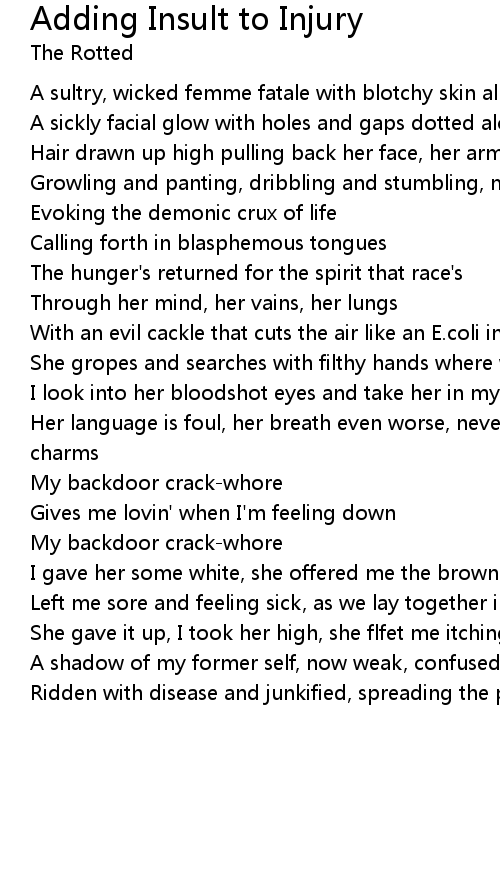 Ridden with disease and junkified, spreading the plague rotting out my insides |
