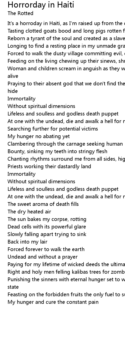 It's a horroday in Haiti, as I'm raised up from the dead |