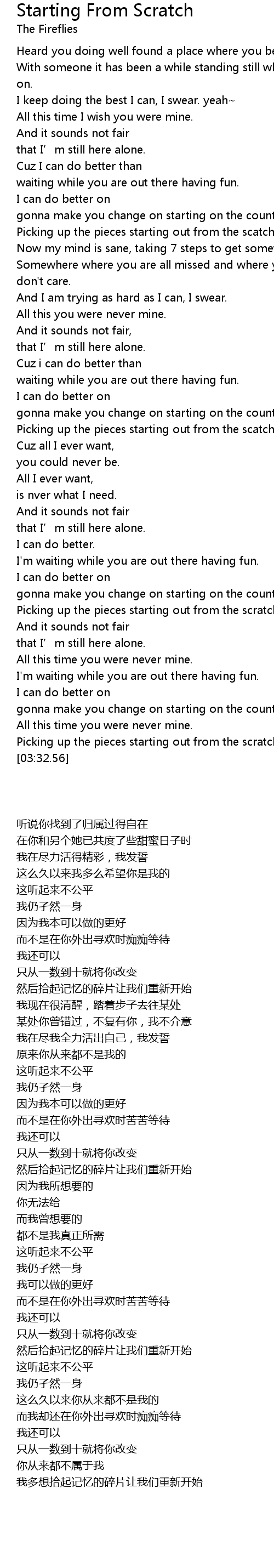 | [03:26.54] | Picking up the pieces starting out from the scratch again. |