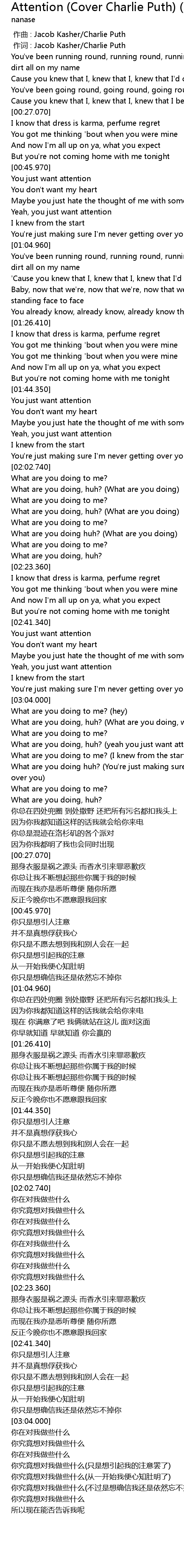 | [00:01.000] | zuò cí : Jacob Kasher Charlie Puth |