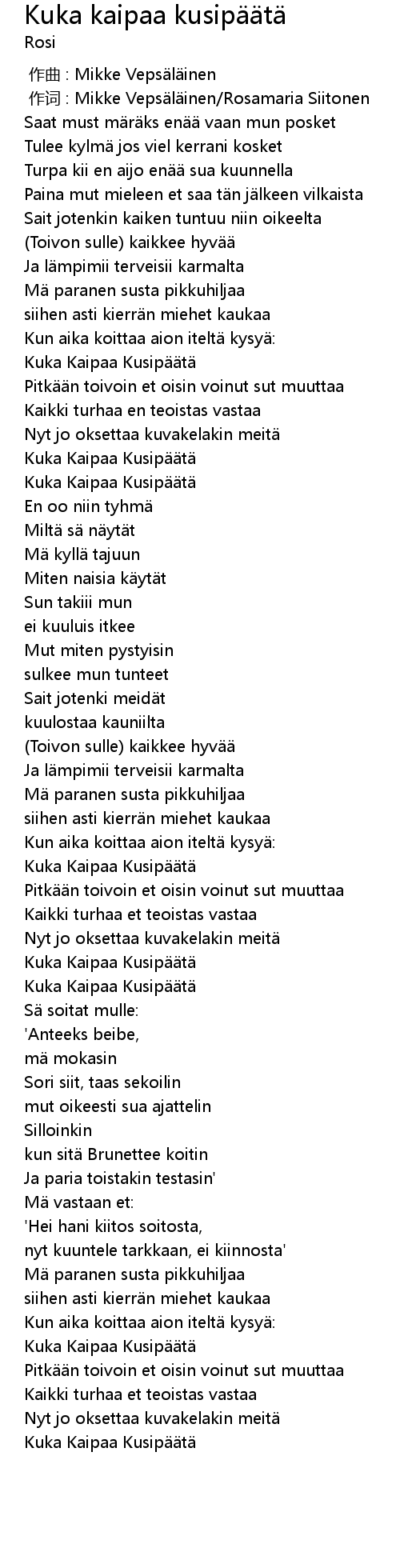 | [02:18.77] | Kuka Kaipaa Kusip t |