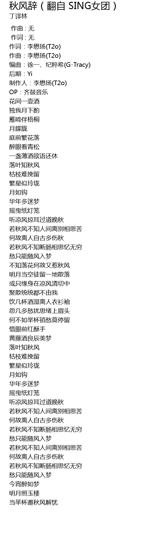 | [01:23.06] | 若秋风不知断肠相思忆无穷 |