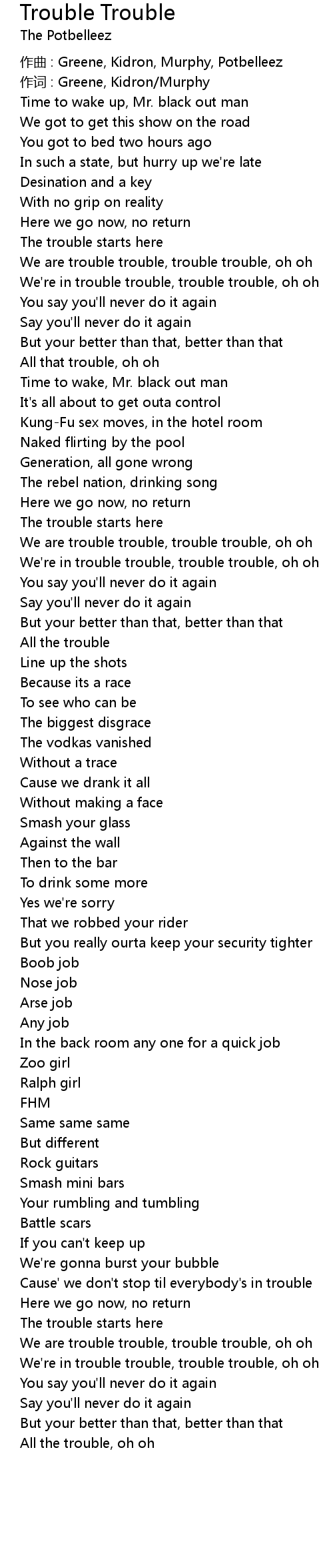 | We' re in trouble trouble, trouble trouble, oh oh | |
