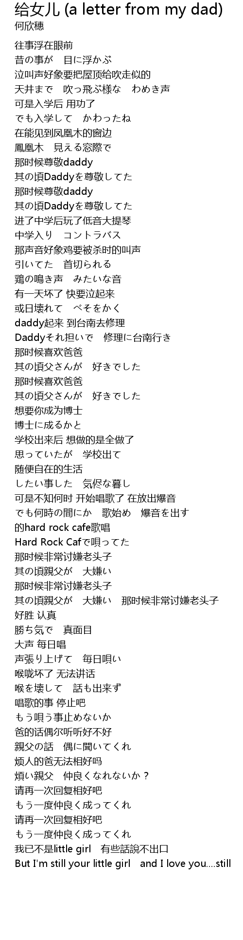 | [05:33.00] | But I'm still your little girl and I love you....still |