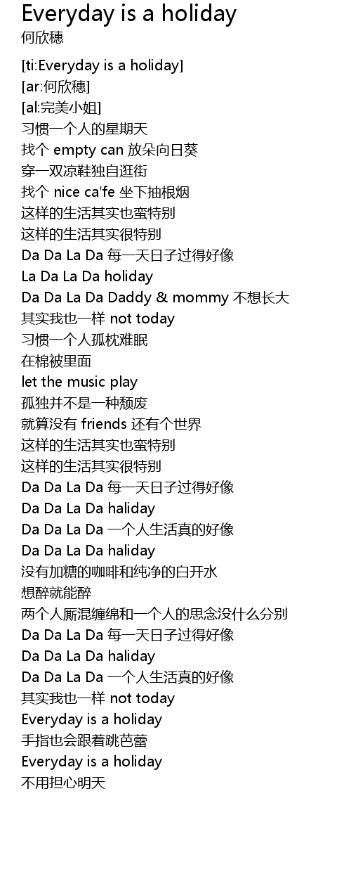 | [02:21.84] | Da Da La Da 每一天日子过得好像 |