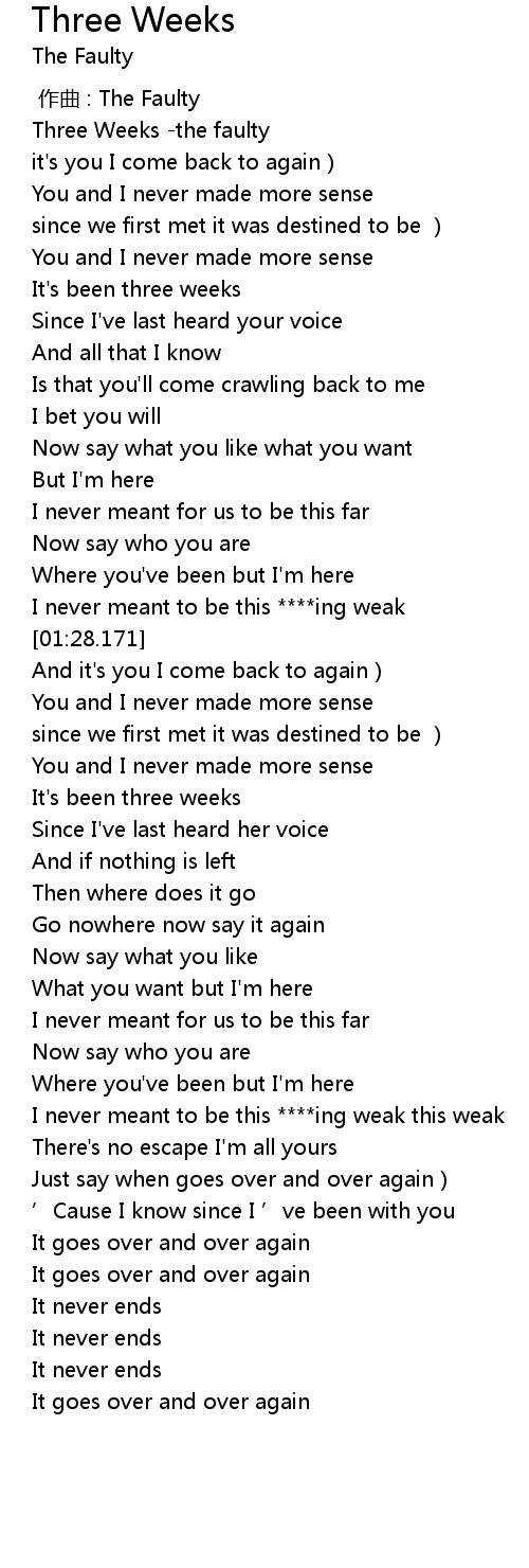 | [02:37.721] | I never meant to be this ****ing weak this weak |