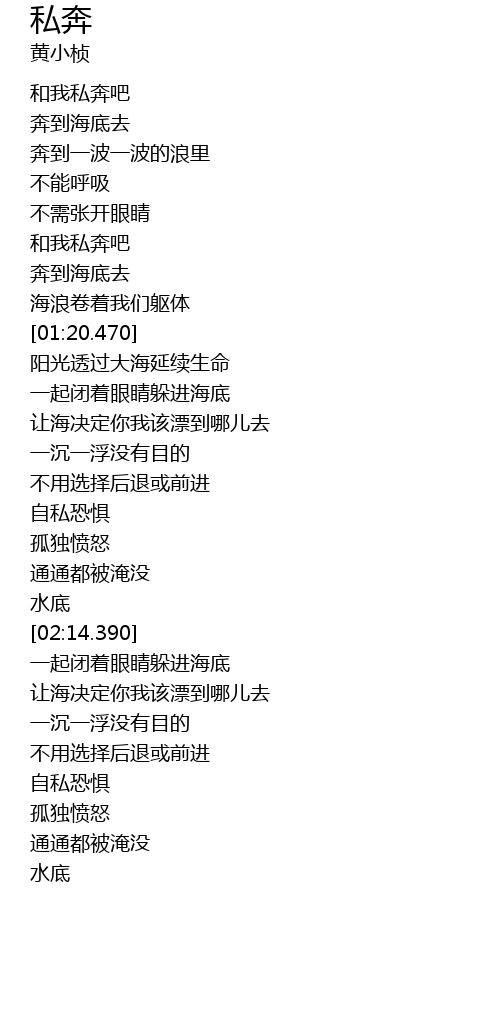 | [01:06.200] | 和我私奔吧 |