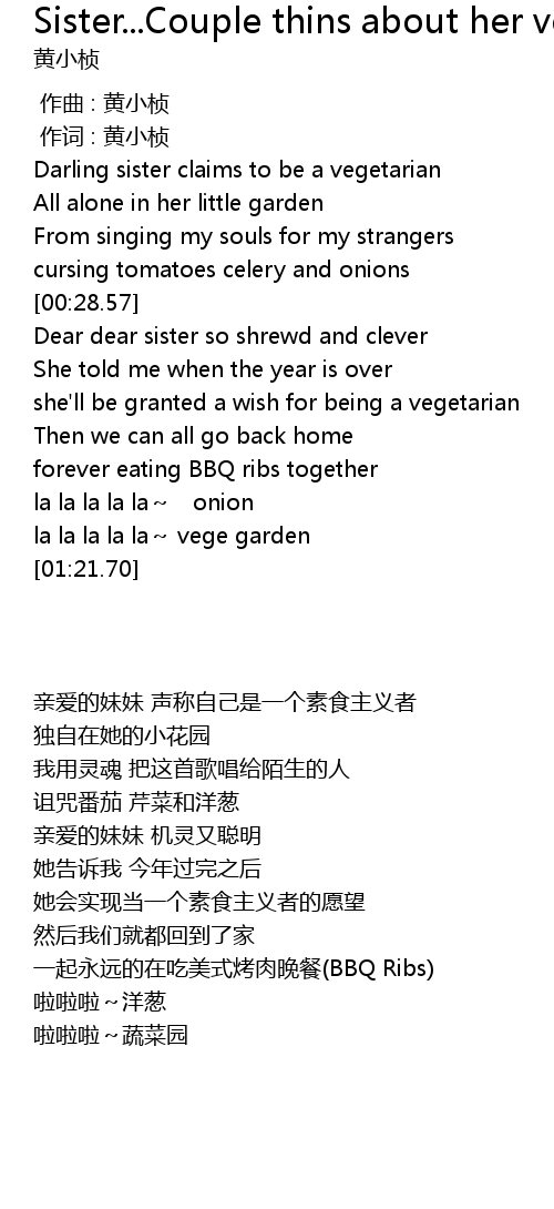 | [00:07.51] | Darling sister claims to be a vegetarian |