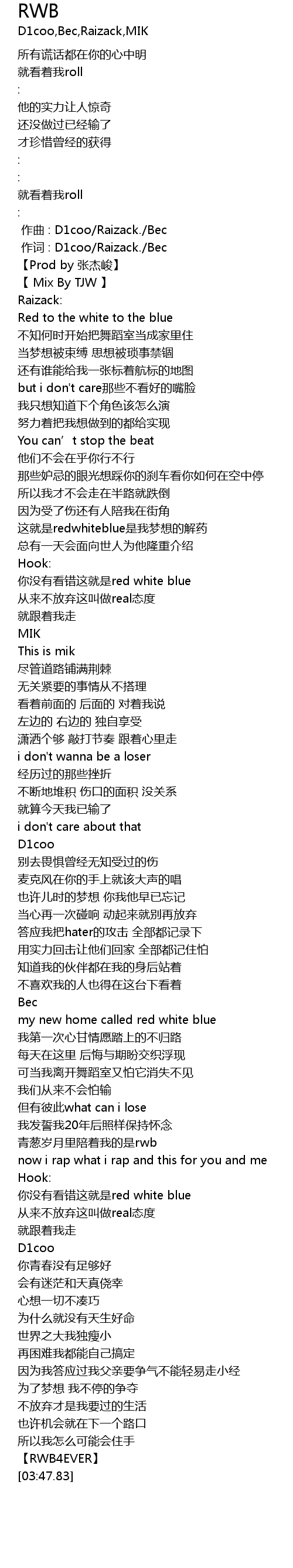 | [02:58.62] | ni mei you kan cuo zhe jiu shi red white blue |