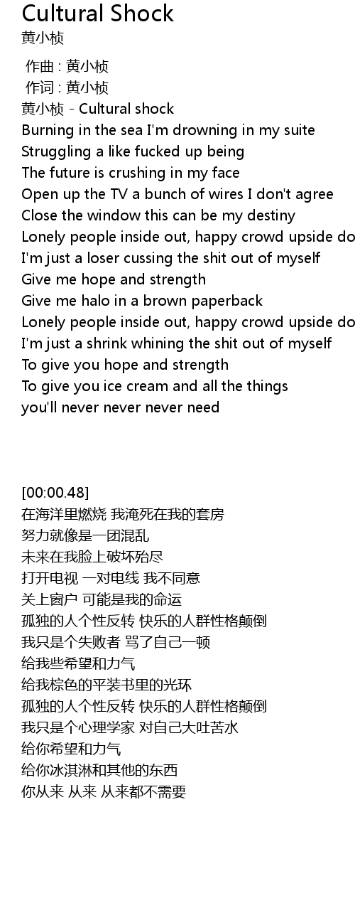 | [00:00.48] | 黄小桢 - Cultural shock |