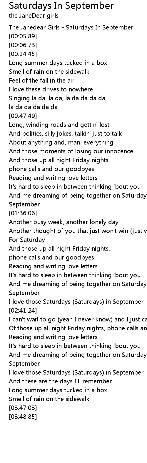 [02:09.23] And me dreaming of being together on Saturdays (Saturdays) in September