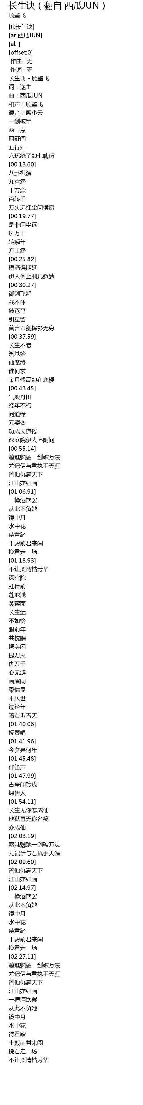 | [00:00.10] | 长生诀 - 顾墨飞 |