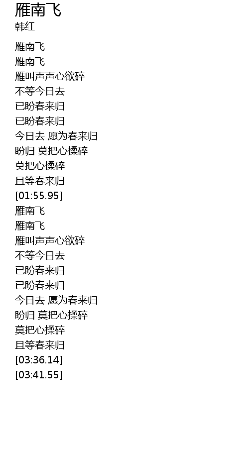 | [01:34.15] | 盼归 莫把心揉碎 |