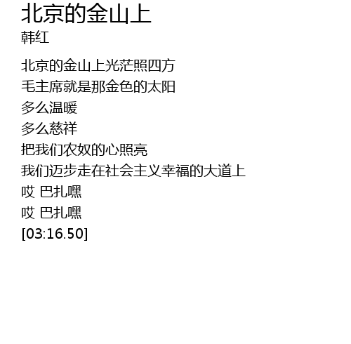 | [01:22.20] | 北京的金山上光茫照四方 |