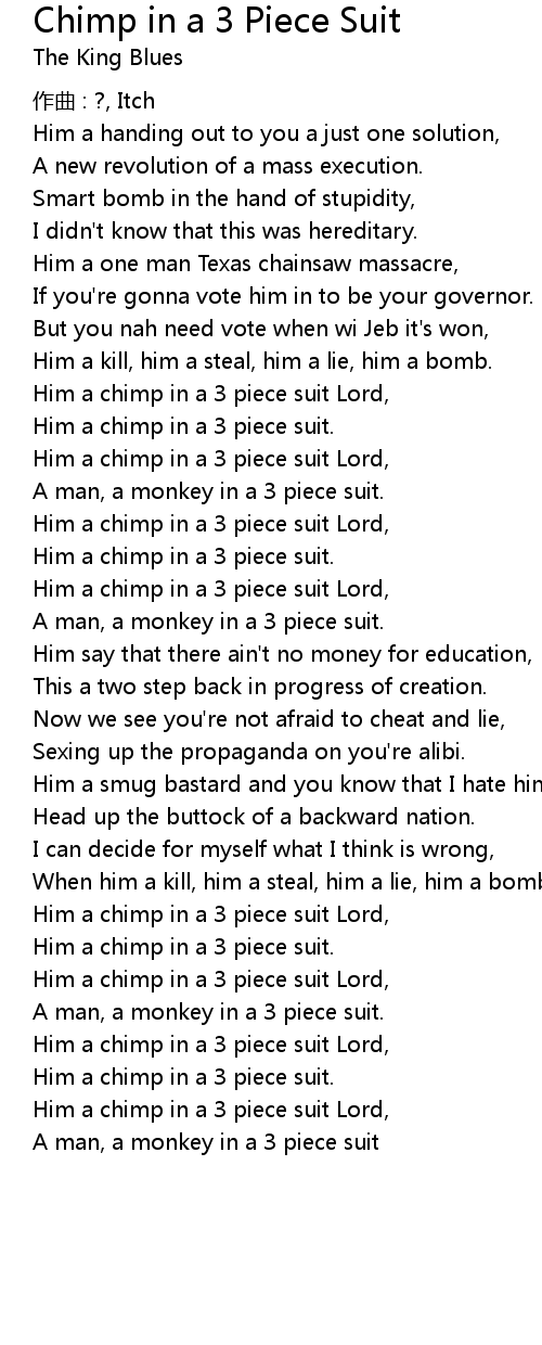 | Him a chimp in a 3 piece suit Lord, | |