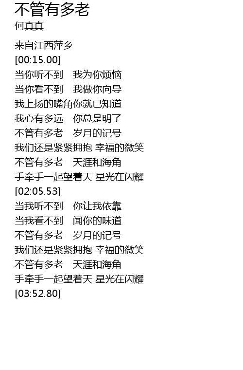 | [01:37.22] | 不管有多老 天涯和海角 |