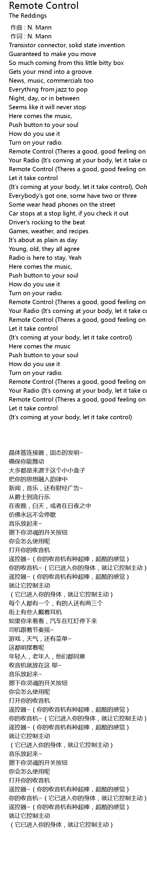 | [01:14.11] | Remote Control (Theres a good, good feeling on your radio) |