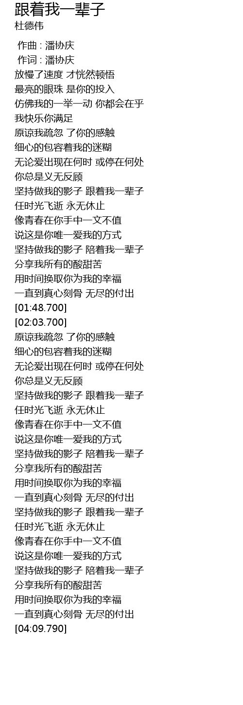 | [02:41.590] | 坚持做我的影子 跟着我一辈子 |