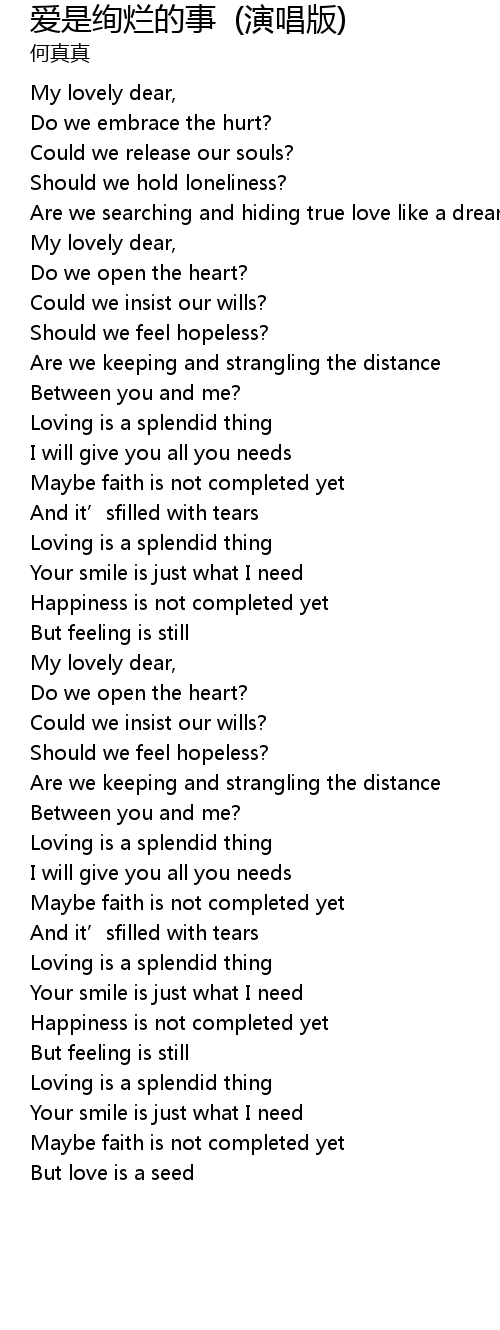 | [00:21] | Are we searching and hiding true love like a dream? |