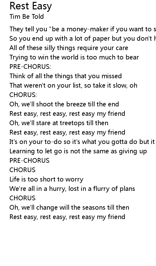 Rest easy, rest easy, rest easy my friend |