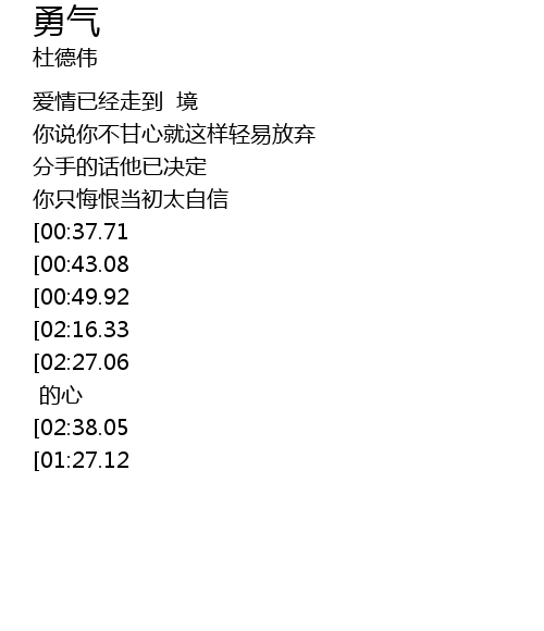| [03:08.36][02:27.06][01:06.45] | bu bi cai yi ta de kan si di li ye bu bi qu zai yi shui zhan ju de xin |