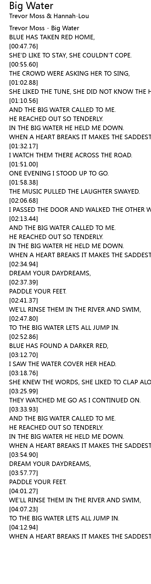 [02:23.05] IN THE BIG WATER HE HELD ME DOWN.