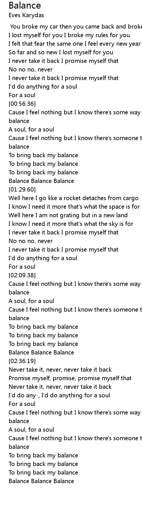 Cause I feel nothing but I know there's some way to bring back my balance |