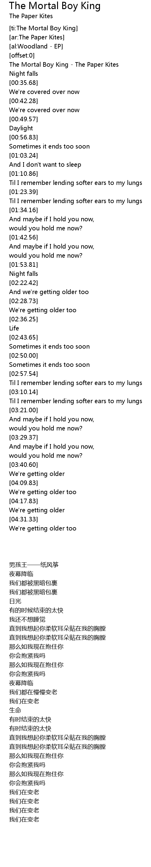 [00:01.89] The Mortal Boy King - The Paper Kites
