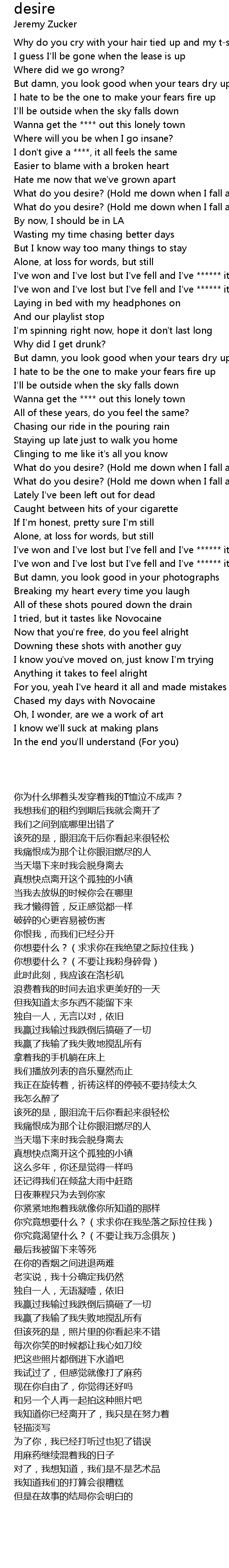What do you desire? (Hold me down when I fall apart) |