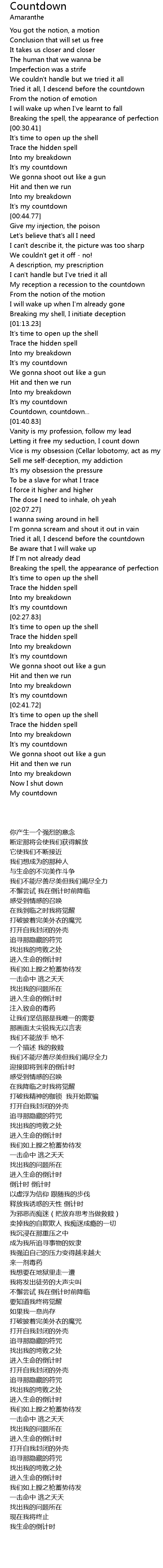 | [01:29.38] | Countdown, countdown... |