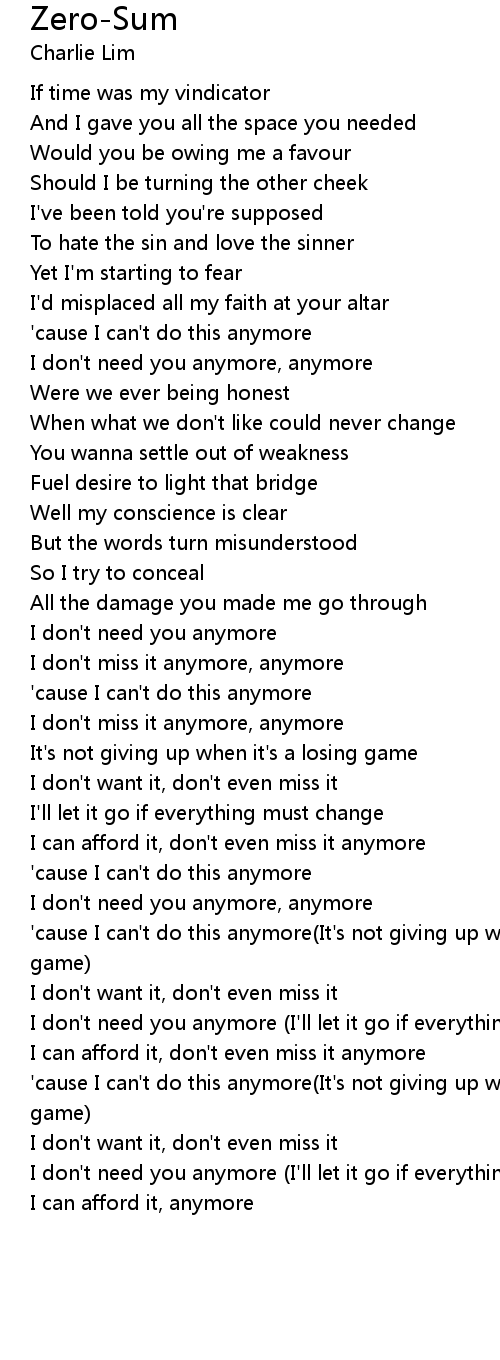 'cause I can't do this anymore(It's not giving up when it's a losing game) |