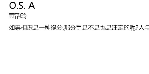 | 如果相识是一种缘分,那分手是不是也是注定的呢?人与人之间的一切,都好像发生的很自然很简单,可是,却也不竟然... |