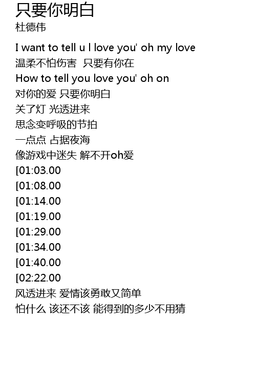 | [03:41.00][02:22.00][01:47.00] | duì nǐ de ài zhǐ yào nǐ míng bái dǎ kāi mén |