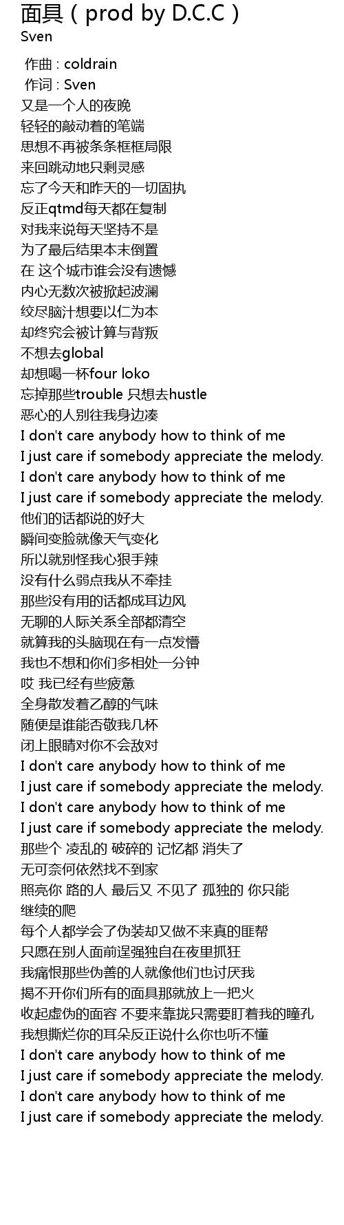 | [01:34.915] | I just care if somebody appreciate the melody. |