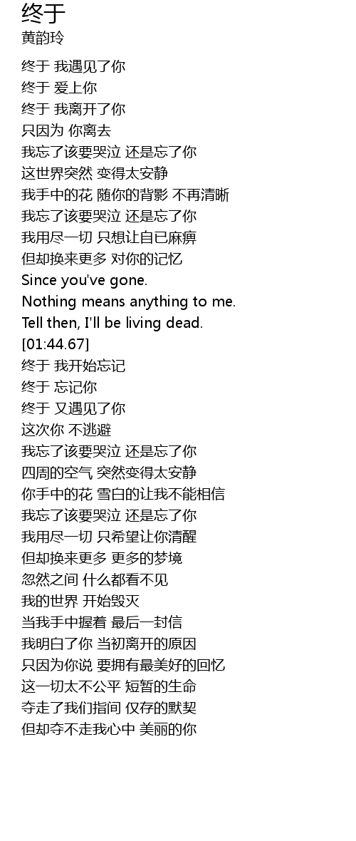 | [01:56.47] | zhōng yú wàng jì nǐ |