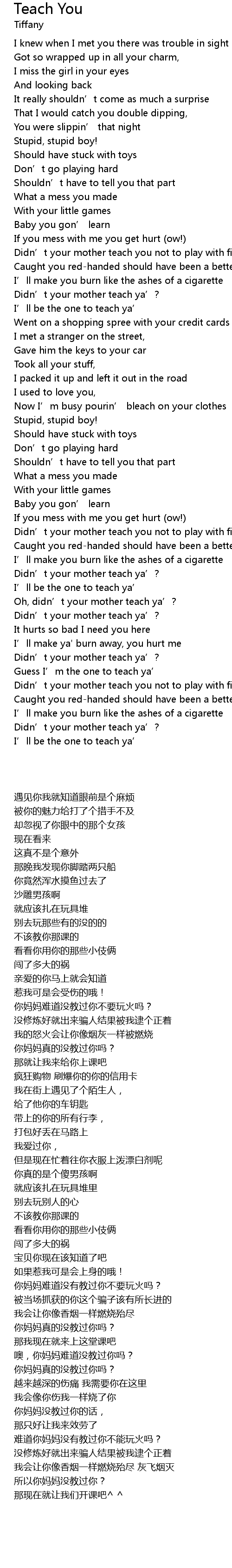 | [00:51.76] | Didn' t your mother teach you not to play with fire? |