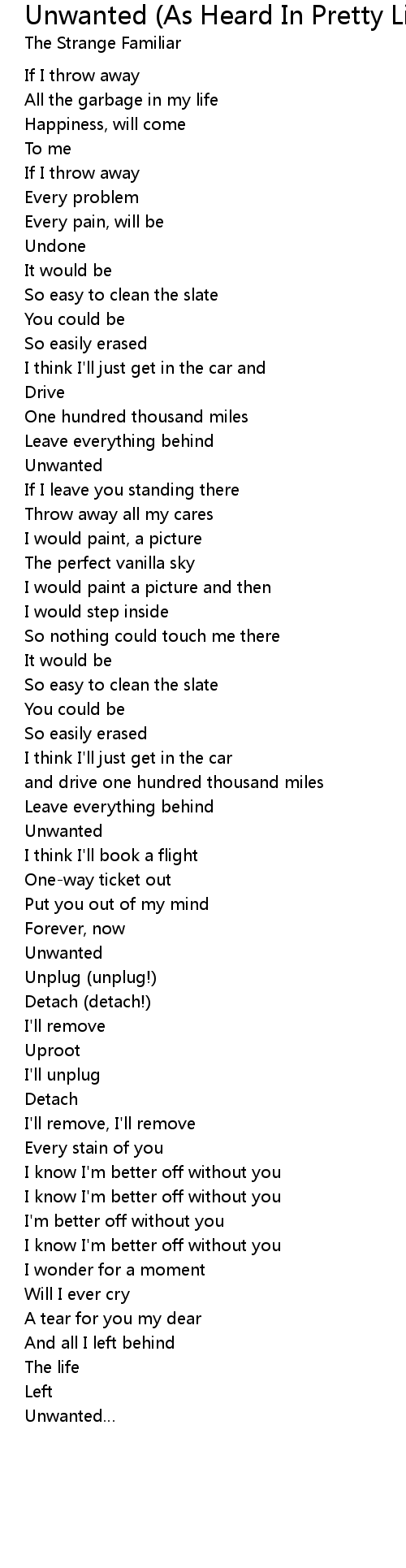 | Song | Unwanted (As Heard In Pretty Little Liars) |