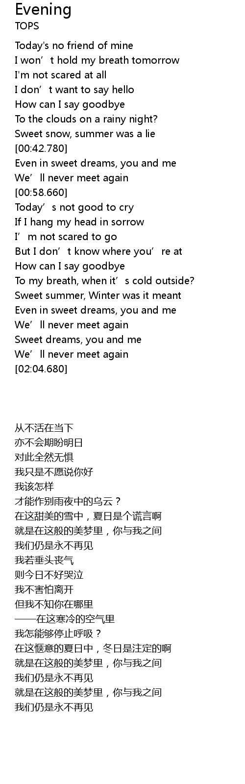 | [00:52.300] | We' ll never meet again |