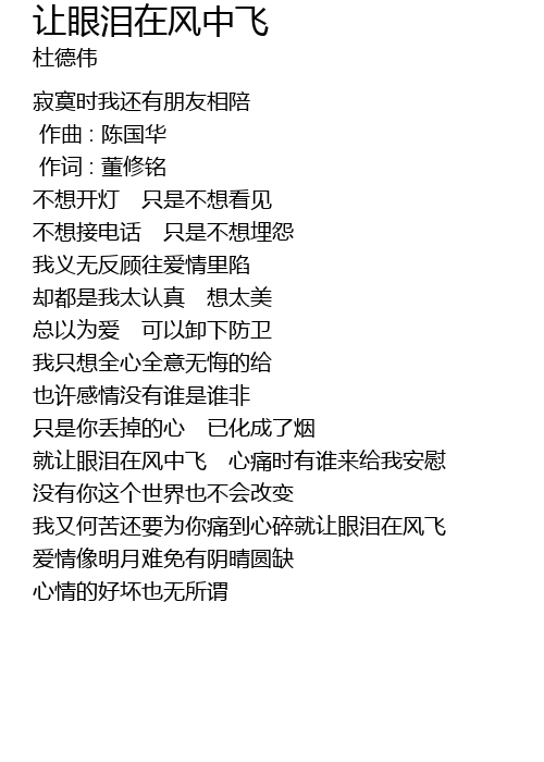 | [01:36.82就让眼泪在风飞 ] | 寂寞时我还有朋友相陪 |