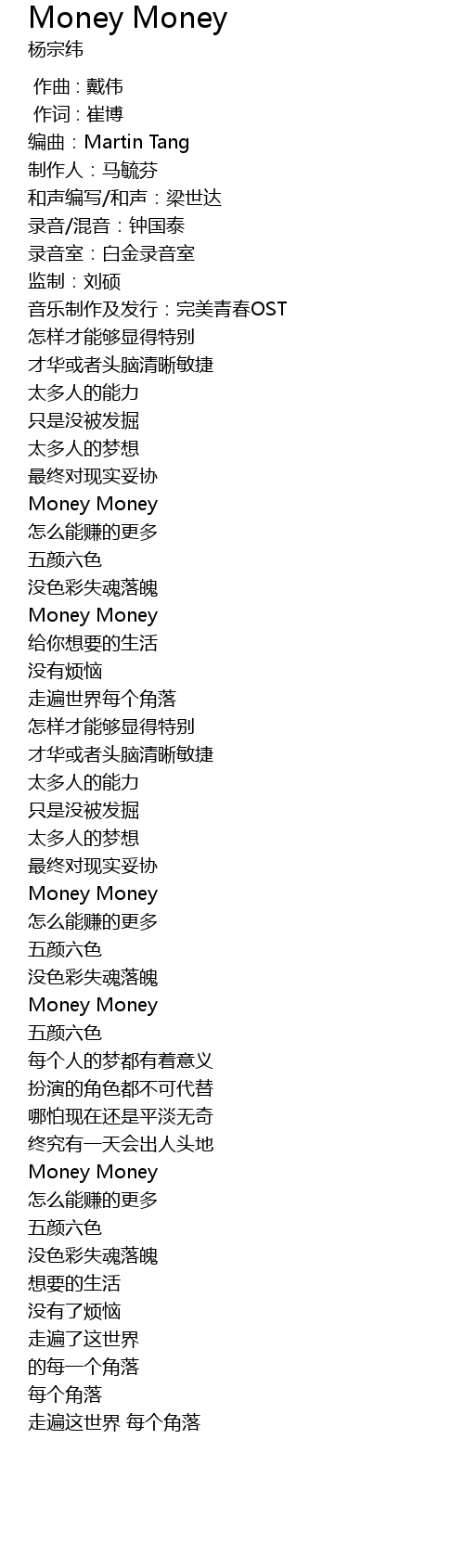 | [00:40.50] | Money Money |