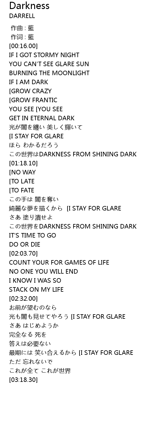 | [01:12.25] | この世界はDARKNESS FROM SHINING DARK |