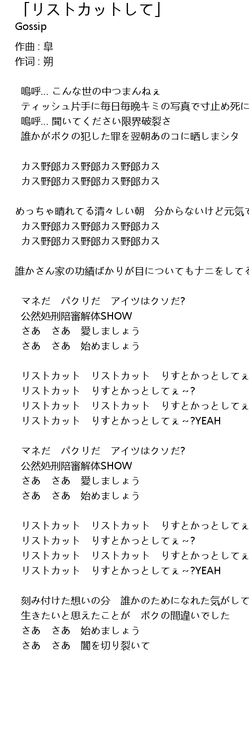 | リストカット リストカット りすとかっとしてぇ~? | |