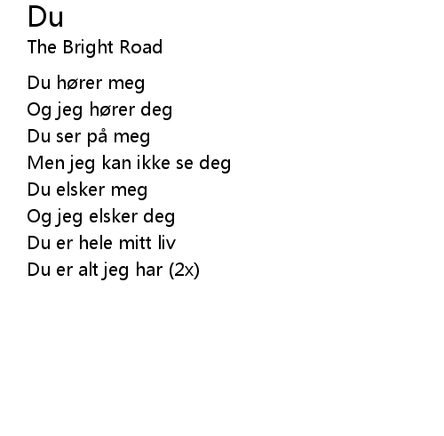 | Du er alt jeg har (2x) |